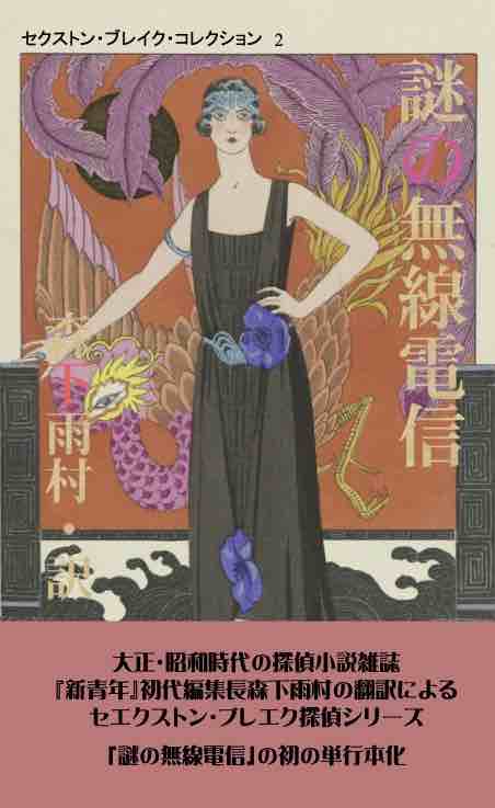 セクストン・ブレイク・コレクションの第二弾は、森下雨村訳の『謎の無線電信』(ヒラヤマ探偵文庫21)になります。森下雨村は、大正9(1920)年から始まった探偵小説雑誌『新青年』の初代編集長でした。また雨村は、雑誌編集者だけでなく、海外探偵小説の翻訳家、少年少女探偵小説の作家でもありました。「謎の無線電信」は、博文館の発行する『中学世界』の大正10(1921)年4月号から11月号まで掲載されます。原作名は、「The Case of the Strange Wireless Message」(The Sexton Blake Library 1st No.125, May 1920)であり、原作者は、ウィリアム・ウォルター・セイヤー(William Walter Sayer 1892-1982)です。原作が発行されたのが大正9(1920)年5月ですから、出版されてから一年も経たないうちに、雨村は原作本を手に入れて訳しました。